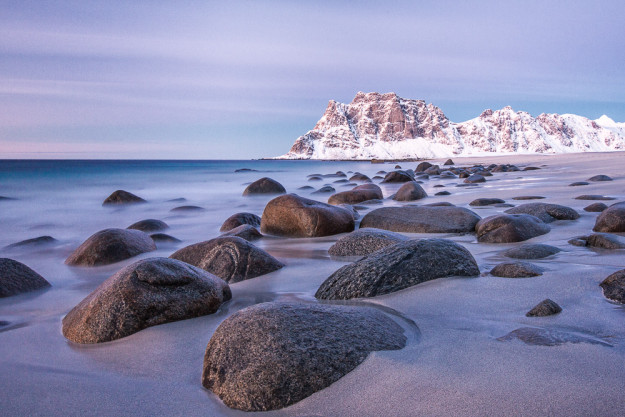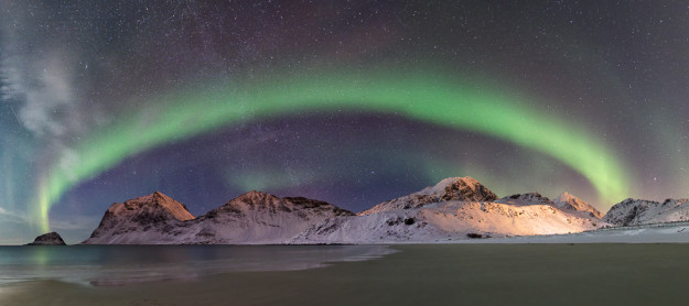 Etwa alle 10 Jahre erreichen die Sonnenflecken ein Maximum. Anders gesagt bedeutet das, dass alle 10 Jahre recht viel Materie von der Sonne in den Raum geschleudert wird. Was passiert, wenn diese Teilchen ins Magnetfeld der Erde eintreffen? Es erzeugt ein Glühen, was wir weithin unter dem Begriff Polarlicht, Nordlicht oder Aurora Borealis verstehen. 2013 war ein Jahr, welches am oder nahe am Sonnenfleckenmaximum war. Dementsprechend habe ich die Möglichkeit genutzt, eine Woche auf den Lofoten zu verbringen, wo die folgenden Bilder entstanden sind. Im Winter gibt es für einen Monat kein Tageslicht, da die Sonne nördlich des Polarkreises nicht über den Horizont steigt. Ein wenig später im Jahr, findet man ideale Bedingungen für Fotografen vor, da die Sonne den ganzen Tag nur knapp über den Horizont ihre Runden zieht. Sonnenuntergangsstimmung fast den ganzen Tag! Ein Traum!