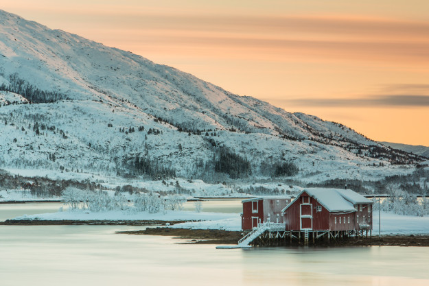 Norwegen stand seit einiger Zeit auf der Liste meiner Orte, die ich gerne besuchen wollte. Wieso war das so und wieso ausgerechnet im Winter? Im Sommer ist es den ganzen Tag hell, es gibt Mückenplagen und jeder Fotograf kennt den Spruch: „Zwischen 9 und 3 hat der Fotograf frei“. Dieses bezieht sich auf die Lichtstimmung, die man zur Mittagszeit vorfindet. Diese ist harsch und hart. Ungünstig für tolle Fotos. Die Kameras werden eh immer besser, wieso also nicht einmal Norwegen im Winter besuchen? Hier gibt es Licht, welches es kurz vor Sonnenuntergang in unseren Breiten gibt, jedoch über Stunden hinweg, da die Sonne Ende Januar bis Anfang Februar es nur kurz über den Horizont schafft. Ideale Bedingungen sozusagen. Die zahlreichen rote Häusern und die weißen Winterlandschaft erinnern mich immer an Weihnachten und man fragt sich, ob der Weihnachtsmann wohl irgendwo im Norden von Norwegen woht?